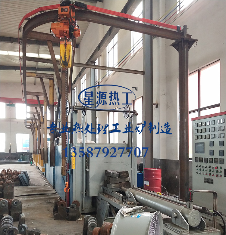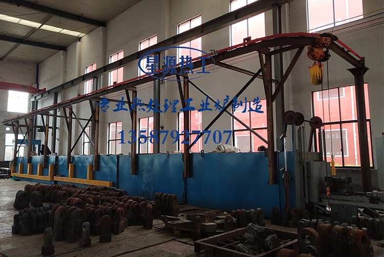 熱處理爐是利用推桿式依靠退料機間隙把放在料框上的爐料(或盤料)推入爐內或推出爐外。工件在爐膛內運行時是相對靜止的,加熱后出爐淬火時,有的是料盤傾倒,把爐料倒出;有的是工件連同料架一起出爐或進入淬火池內冷卻。